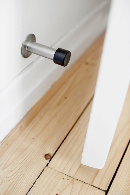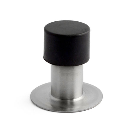Dørstopper i rustfritt stål for skjult feste med skrupinne. Beskytter dør og vegg mot støt og skader. For tre- eller steingulv. Leveres med skruer og plugger. Høyde 56 mm.